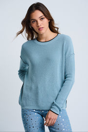 An everyday staple with a modern twist, the Around Town sweater is crafted from a soft Cotton-Cashmere blend and features a waffle stitch texture with contrast seam and cuff detailing. Its colorblock back and drop shoulders create visual interest and relaxed appeal. Finished with ribbed edges for a clean fit.