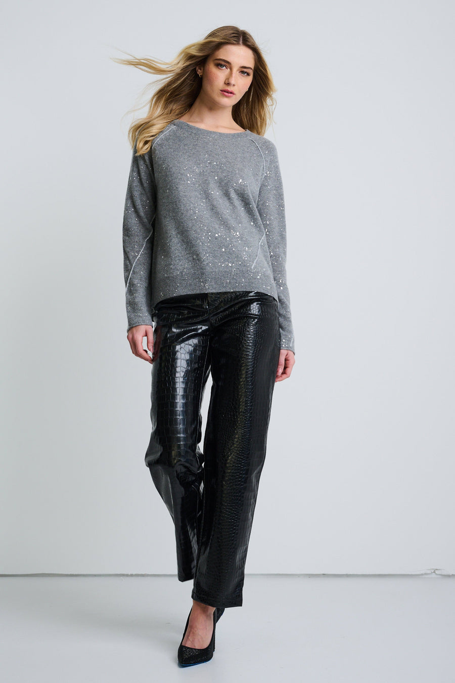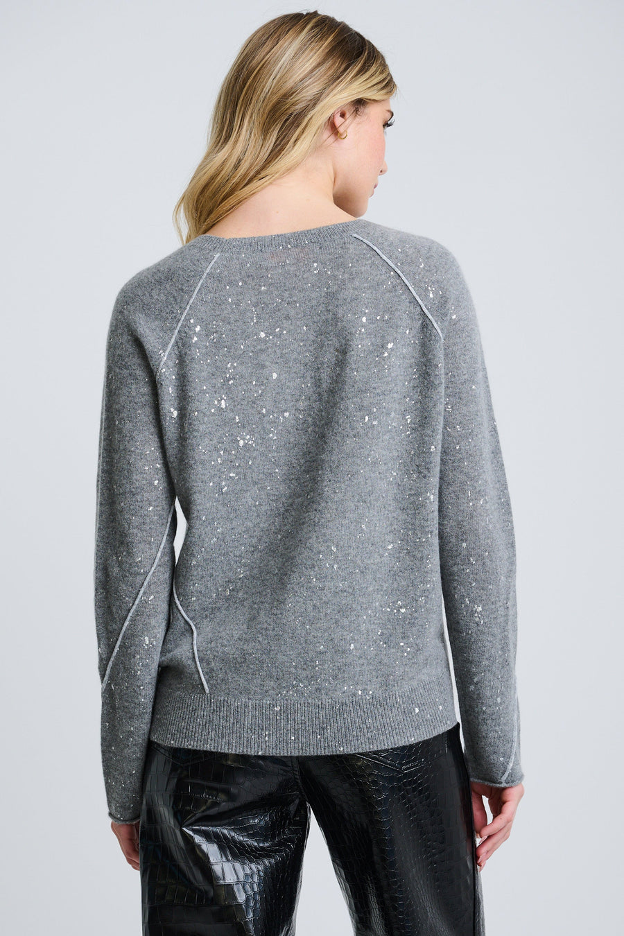With a soft shimmer and refined texture, the Diamond Dust sweater brings subtle statement to your seasonal wardrobe. Made from 100% cashmere with a metallic print and contrast piping, it's finished with a ribbed hem and delicately rolled cuffs. A relaxed raglan sleeve ensures easy layering and movement.