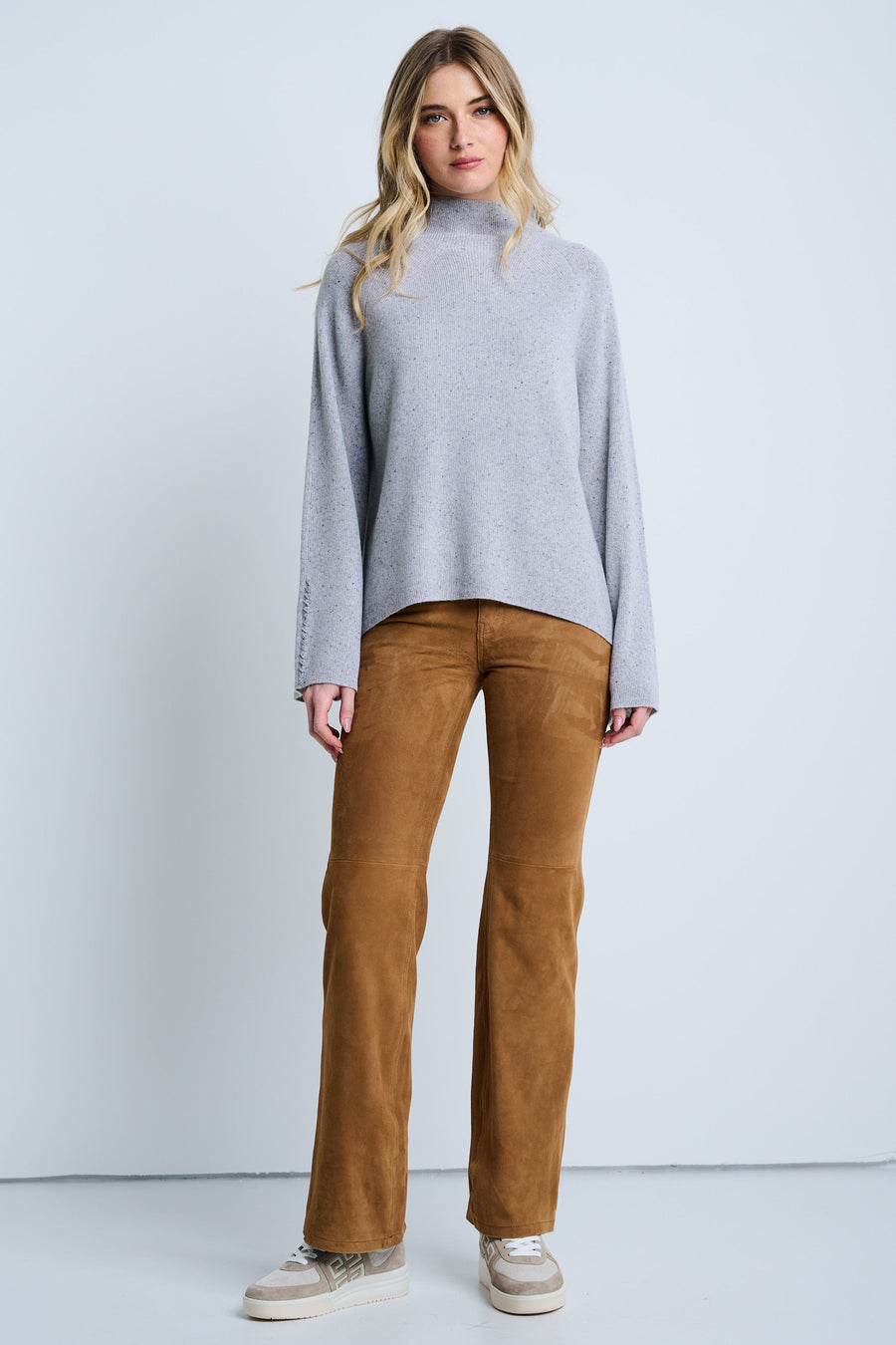 The High Society pullover brings modern polish to cool-weather dressing with its oversized shape and classic rib texture. A high neckline, raglan sleeves, and contrast cuff stitching add dimension to the luxe 100% Cashmere knit. Designed to drape effortlessly and elevate your everyday.